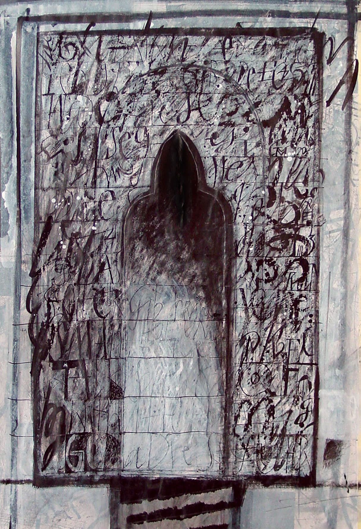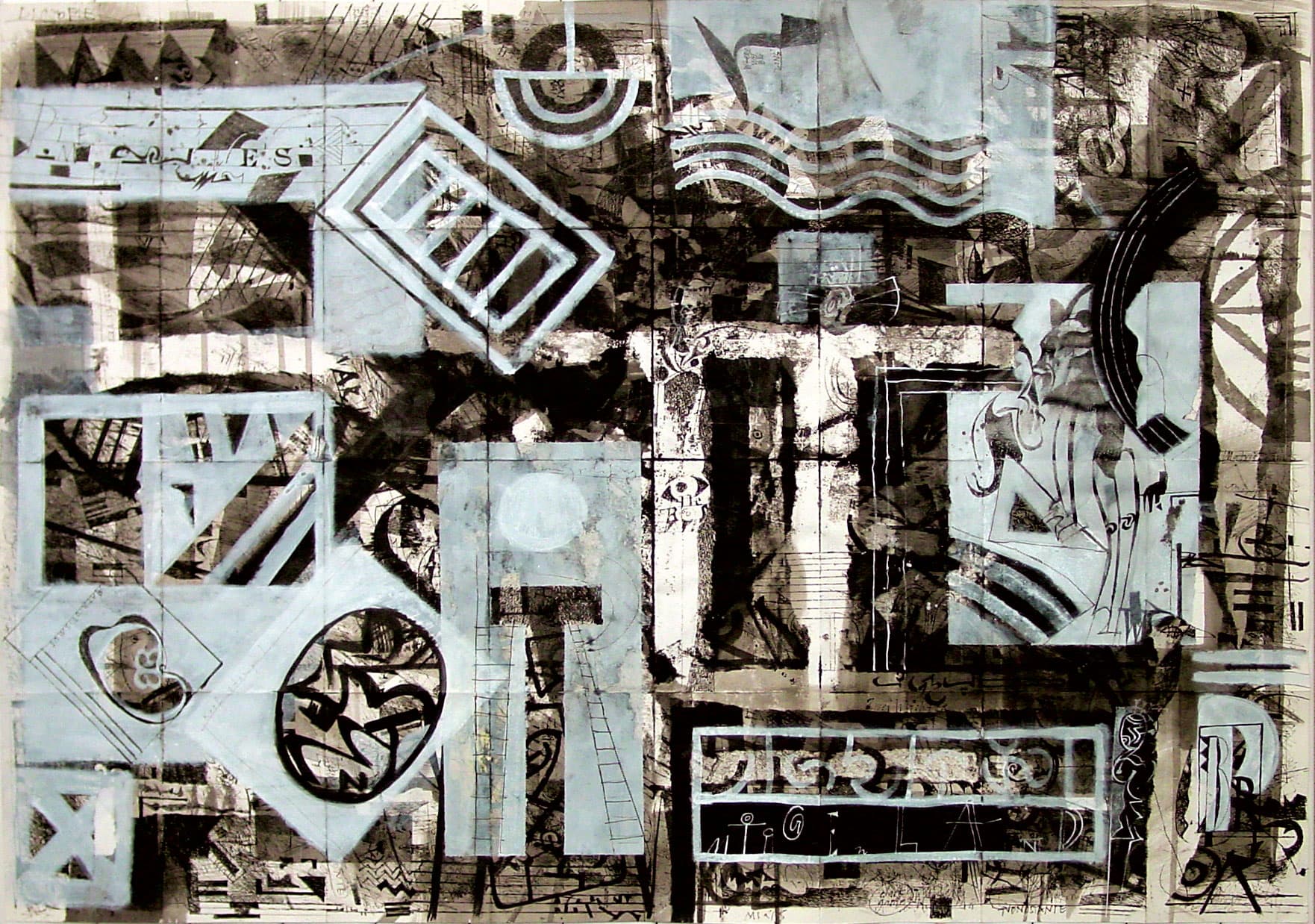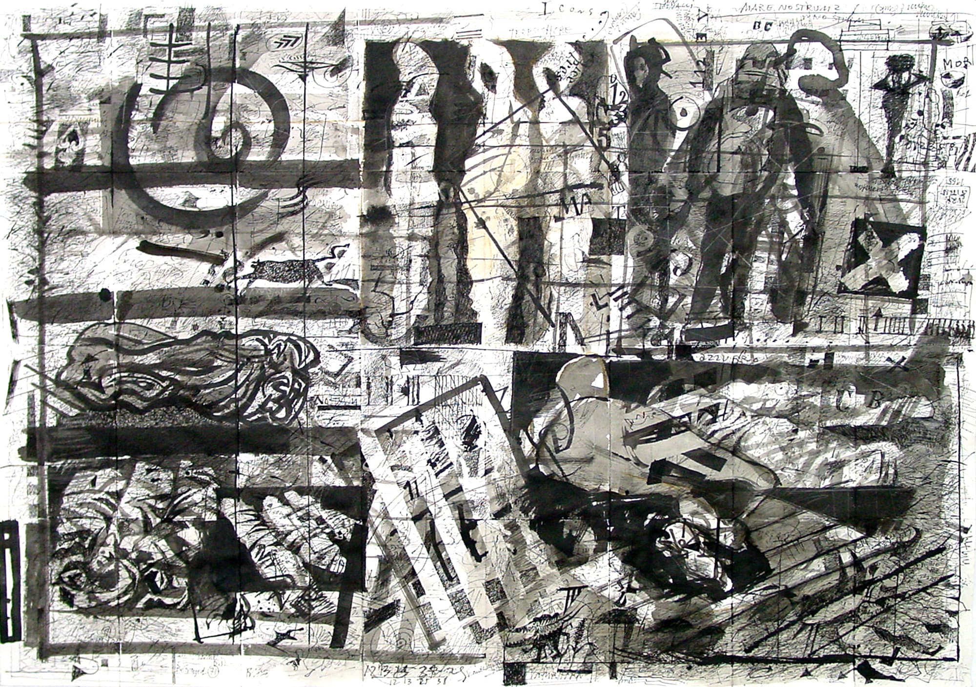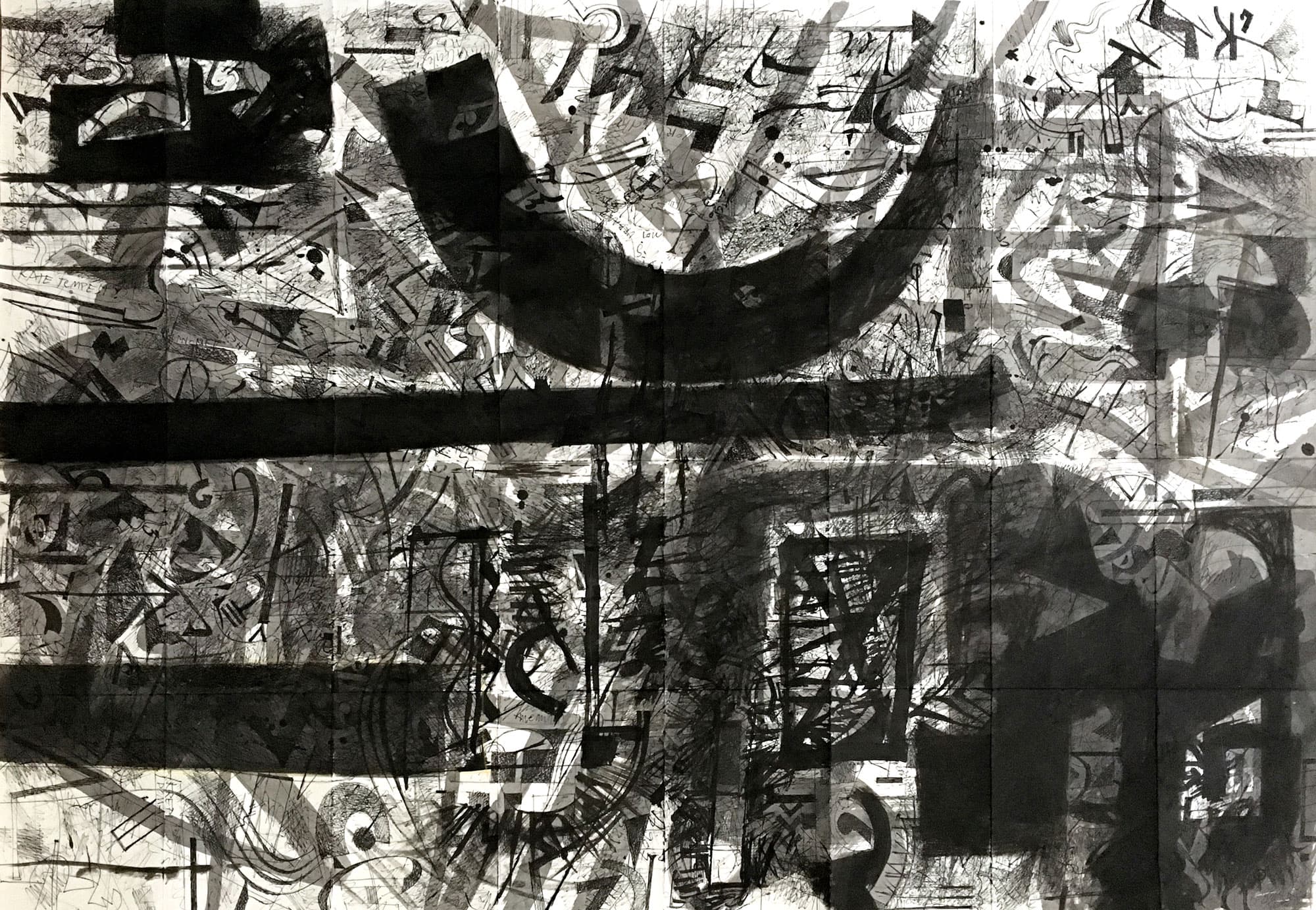 Was zuerst den Eindruck eines chaotischen Gekritzels erweckt, wird in einem abschliessenden Arbeitsvorgang neu strukturiert. Zum Einsatz kommen nicht nur Feder und Tusche, sondern auch Weisshöhungen mit Pinsel.