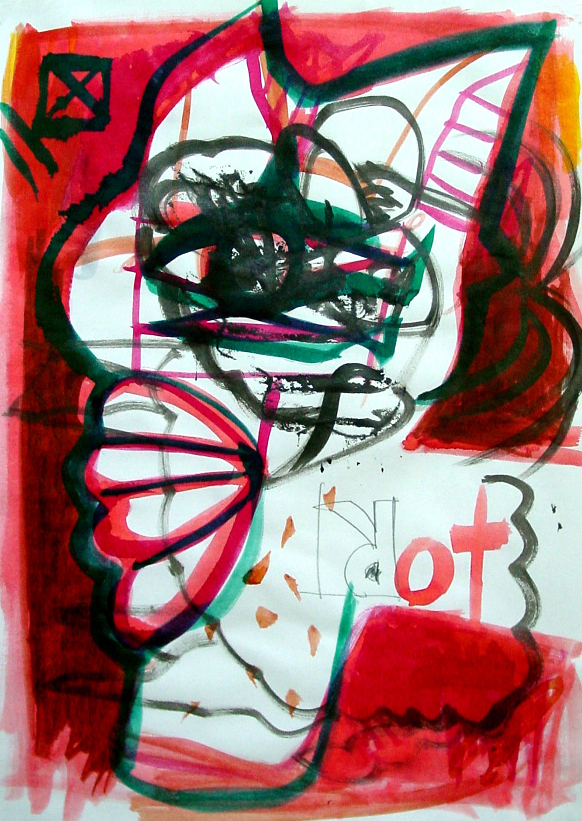 Die Skizzen entstehen alle auf Papier und in diversen kleineren Formaten. Dabei kommen unterschiedlichste Materialien zum Einsatz. Zum Beispiel Tusche, Tinte, Kreide, Tempera, Aquarellfarbe, Kohle oder Bleistift. In anderen Worten — Freiheit pur.