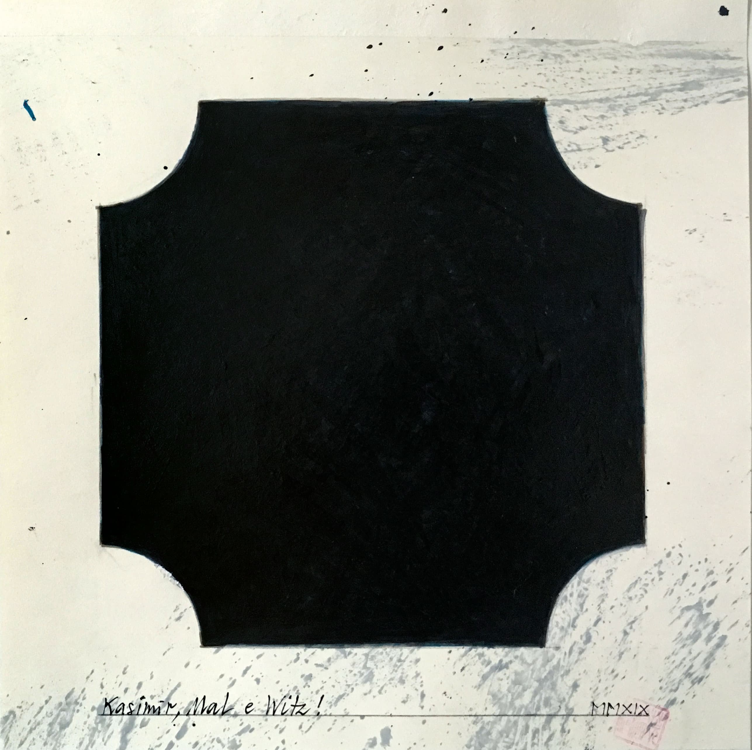 Kleine karnevaleske Kunst-Korrektur «Kasimir Mal e Witz!» 2018 | 30/30 cm | Tusche und Kreide auf Papier | KatNr. 1467 Aus der Reihe: skizzelet